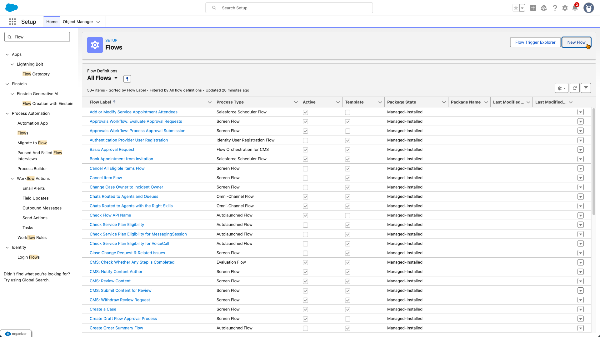 - Flow: The actual automation you build. A Flow is like a set of instructions that tells Salesforce what to do under specific circumstances.